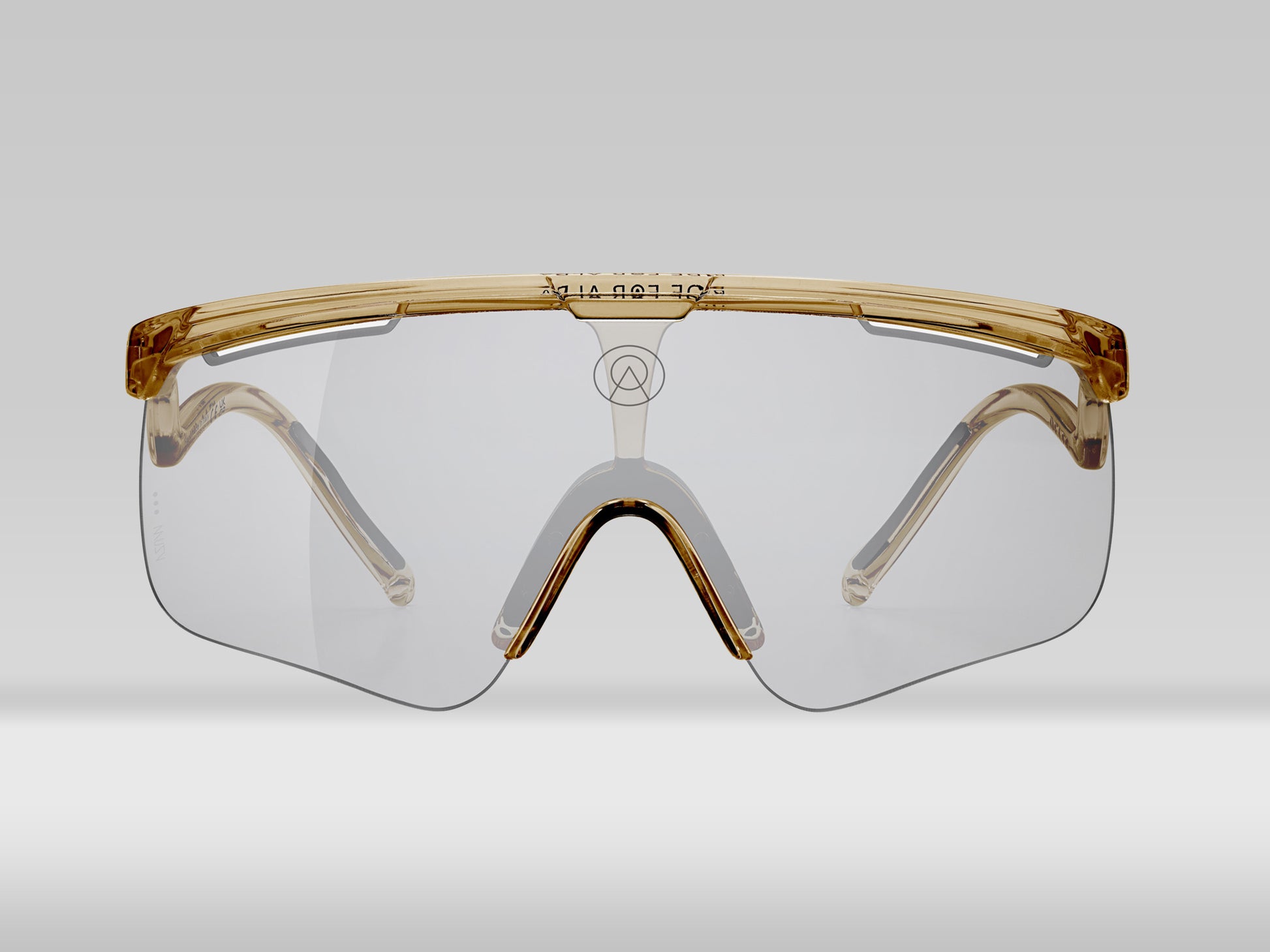 Materialet i bågarna är TR90, tillverkat av nylon och kolfiber – organiskt kompatibelt och hudvänligt även vid långvarig användning. Det är 20 % lättare än andra konventionella material och ger bättre skydd mot stötar och dragkrafter. Materialet har hög motståndskraft utan att deformeras vid höga temperaturer.